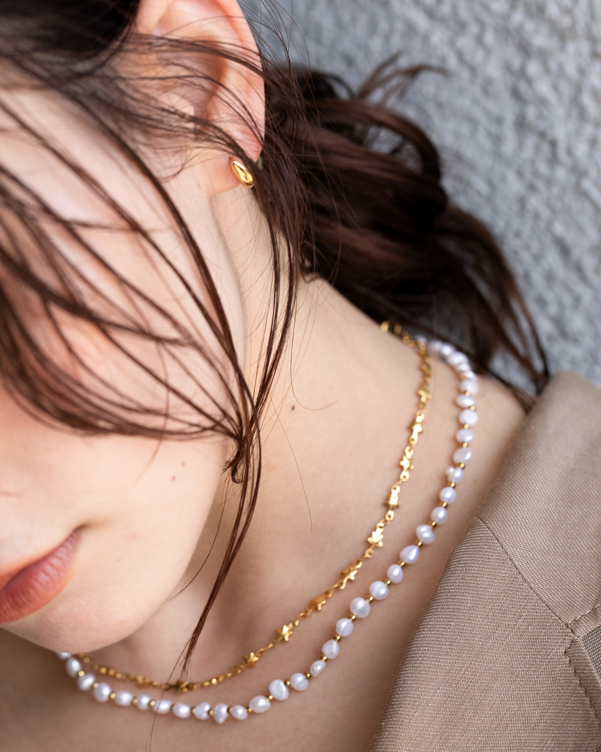 ・当店のアクセサリーはアレルギーフリーのお素材を使用しておりますが、その日の体調やアレルギーの度合いにより稀に痒みが出る場合がございます。痒みがでた場合、時に夏場の汗疹症状の際はご使用を中止してください。